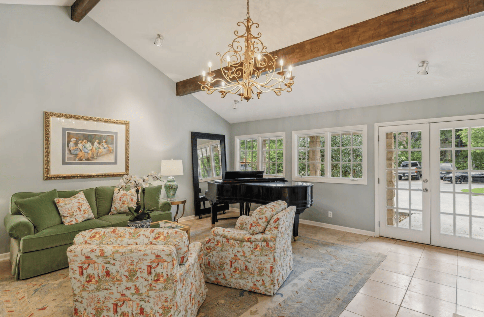 A second living area/sunroom extends off the main living space, offering room for a music area, play space, media lounge, or peaceful reading retreat.